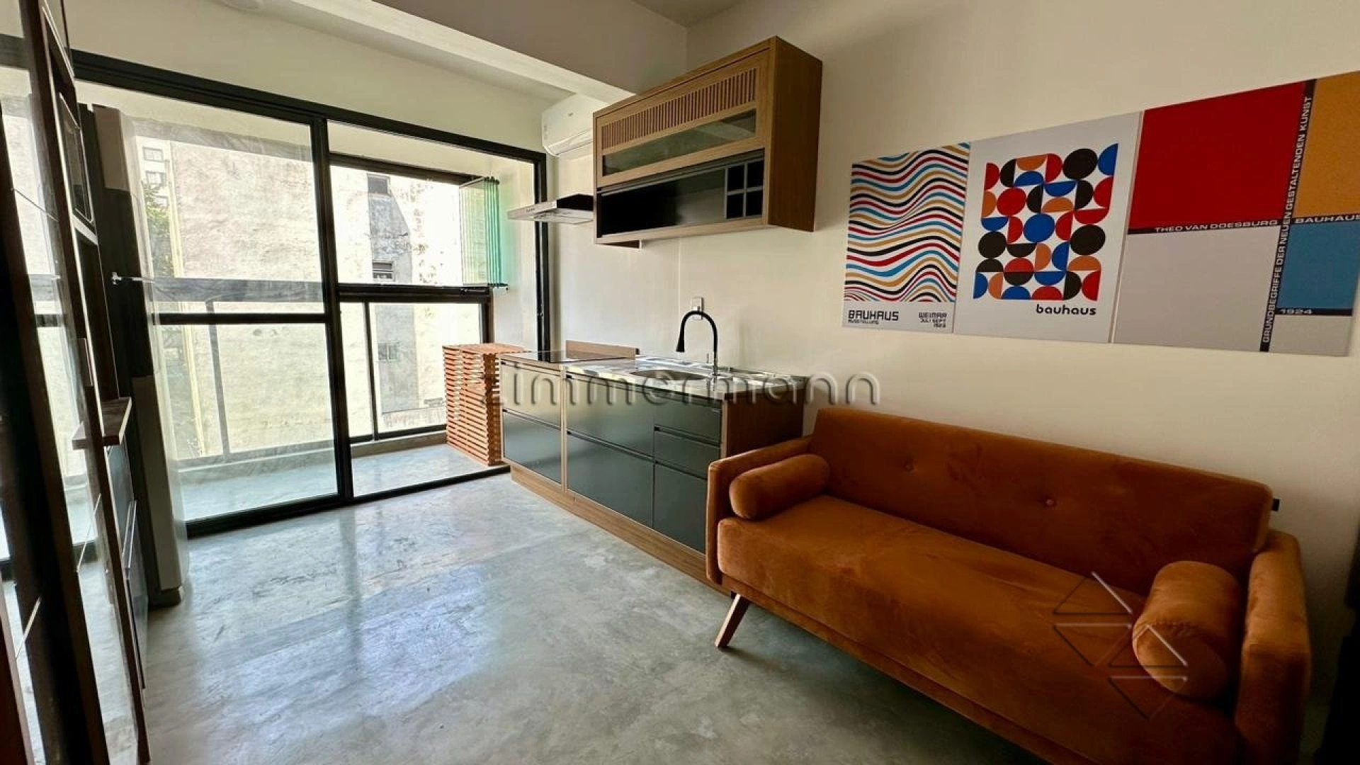 Com 25 m², totalmente mobiliado e com ambientes integrados, o imóvel oferece 1 dormitório, além de varanda, sofá, cama, cooktop, exaustor, ar-condicionado e geladeira.